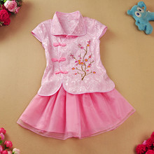 女童唐装夏季公主纱裙套装童装夏天装旗袍短裙儿童节民族舞蹈礼服