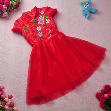 2017新款女童装公主裙儿童旗袍夏六一民族演出裙子唐装礼服224