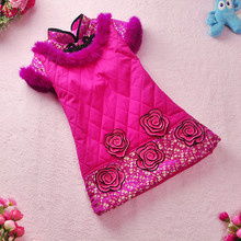 2017秋冬新款夹棉 儿童旗袍绣花格格服宝宝唐装裙 女童演出礼服