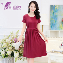 韩黛姿2017夏装重磅真丝连衣裙绑带修身短袖桑蚕丝中年妈妈裙子