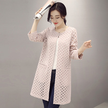 薄款风衣女中长款2017春秋新款 韩版镂空七分袖开衫外套上衣女潮