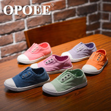 opoee儿童帆布鞋男童女童鞋子 宝宝板鞋糖果色一脚蹬2017春季新款