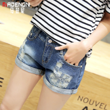 2017夏季牛仔短裤女宽松显瘦直筒裤大码浅色破洞百搭卷边中腰热裤
