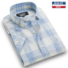 杰哈尼夏季短袖衬衫男士休闲纯棉格子衬衣大码商务男装修身半袖衫
