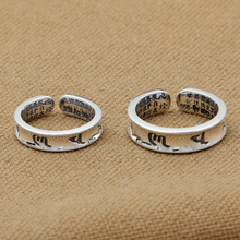 S999足银纯银心经戒指 男女情侣对戒 六字真言大明咒泰银开口指环