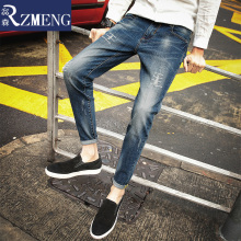 2017春季新款破洞九分裤男小脚裤修身牛仔裤韩版潮流男生9分裤子