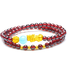 【新品】黄金石榴石手链3D硬金足金貔貅六字真言转运珠手串男女款