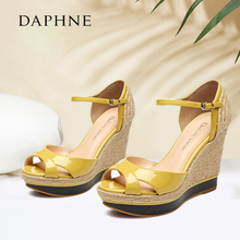 Daphne/达芙妮凉鞋女正品坡跟夏季新款时尚高跟鱼嘴浅口韩版女鞋