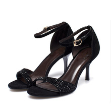 达芙妮/圆漾2015夏新款女鞋 优雅水钻高跟露趾扣带凉鞋1015303804