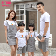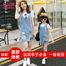 亲子装夏全家装2017新款一家三四口套装母子母女装家庭装背带短袖