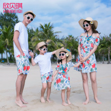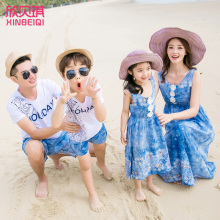 沙滩亲子装海边三口韩版海边度假2017新款夏季母女子装亲子装夏装