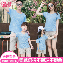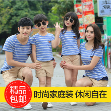 亲子装夏装新款韩版全家装一家三口家庭短袖套装母女子装时尚休闲