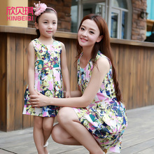 女童夏装2016新款亲子装母女连衣裙母女春装宝宝沙滩旅行休闲套装