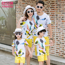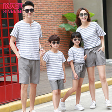 亲子装夏装全家装家庭装2017新款母女母子装一家三口家庭短袖套装
