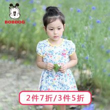 巴布豆童装2017夏季款女童连衣裙儿童家居服短袖棉质印花裙子