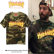 2017夏季欧美潮牌火焰图案迷彩短袖青少年男女生嘻哈个性半袖t恤