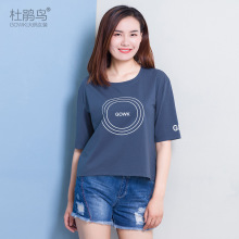 大码女装五分袖t恤 宽松中长款T恤植绒图案胖mm开叉外穿打底衫潮
