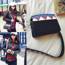 刘雯同款撞色印花包包女2017新款潮链条小方包欧美时尚单肩斜挎包