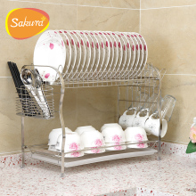 SAKURA 304不锈钢双层碗架沥水架 厨房置物架用品盘子架放碗碟架2
