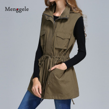 蒙格勒纯棉工装马甲女春秋中长款休闲多口袋大码开衫外套女士马夹