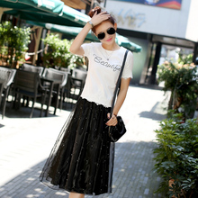 2016大码女装连衣裙显瘦套装裙胖mm雪纺t恤加肥加大半身裙两件套
