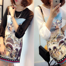 2017大码女装春胖mm中长款雪纺连衣裙 加肥加大灯笼袖韩版打底衫