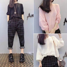 2016大码女装秋季胖妹妹打底衫200斤格子小脚裤加肥加大两件套装