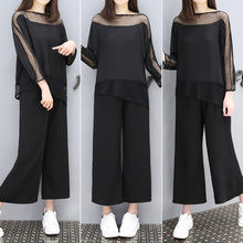 欧洲站2017春装大码女装胖妹妹200斤上衣阔腿裤两件套胖mm套装潮