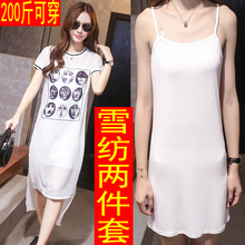 2016大码女装两件套夏胖mm雪纺连衣裙加肥加大中长裙200斤背心裙