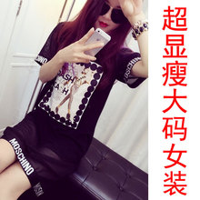胖妹妹200斤套装大码夏装新款2017潮胖mm女装短袖t恤运动两件套女