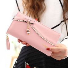 钱包女长款女士钱包韩版搭扣手拿包流苏女式手包卡通钱夹零钱包
