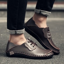 夏加大码男鞋45码真皮休闲皮鞋大号套脚46懒人鞋男士豆豆鞋47男鞋