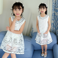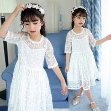 童装女童连衣裙夏装蕾丝公主裙2017韩版镂空中大童网纱裙儿童裙子