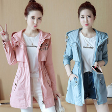 2017年春季韩版百搭时尚潮流长袖纯色中长款风衣女外套女装