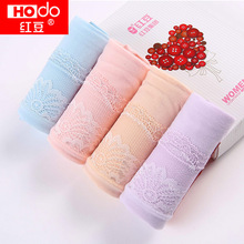 4条红豆内裤女纯棉裆质面料全面女士性感低腰蕾丝边少女三角裤