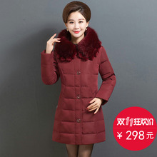 冬装中老年羽绒服女中长款加厚大码宽松中年女装大毛领妈妈装外套