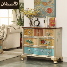 阿拉木汗美式乡村实木斗柜欧式客厅彩绘储物柜卧室复古床头柜做旧