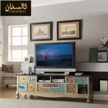 阿拉木汗美式田园茶几电视柜组合套装小户型客厅实木彩绘复古家具