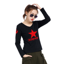 水兵舞秋冬长袖T恤女大码新款服装修身纯棉上衣短袖V领黑色五角星