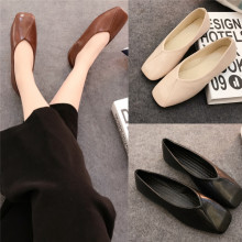春季新款复古平底软底芭蕾鞋船鞋韩版浅口方头女鞋松紧带舒适单鞋