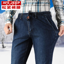 AFS JEEP秋冬新款男士牛仔裤松紧带裤腰斜插袋男裤子微弹宽松直筒