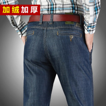 AFS JEEP加绒牛仔裤男士加厚冬季男裤子直筒商务宽松大码三层夹绒