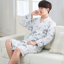 青年长袖睡袍男纯棉夏季全棉中长款薄款浴袍春秋季男式休闲家居服