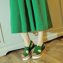 欧美夏季漆皮厚底鱼嘴女鞋超高跟防水台真皮罗马坡跟凉鞋绿色白色