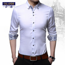 春季男士衬衫新款长袖翻领纯色修身韩版纯棉薄款男士衬衣免烫潮