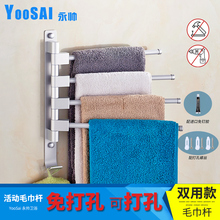 免打孔 太空铝活动毛巾杆 旋转毛巾杆三杆四杆 浴室卫生间毛巾架