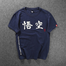 悟空新款中国风汉字刺绣印花T恤男短袖民族风情侣夏装纯棉半袖潮