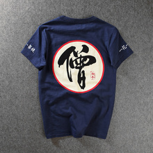 原创复古中国风僧个性文字刺绣印花潮牌T恤男女短袖情侣夏装半袖