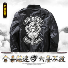 秋冬新款悟空中国风汉字刺绣印花飞行员服夹克 潮牌男女情侣外套