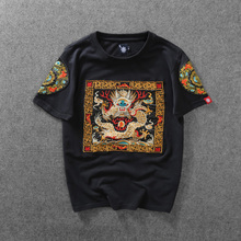 中国风刺绣龙袍T恤男女纯棉短袖夏季新款时尚印花半袖情侣体恤潮